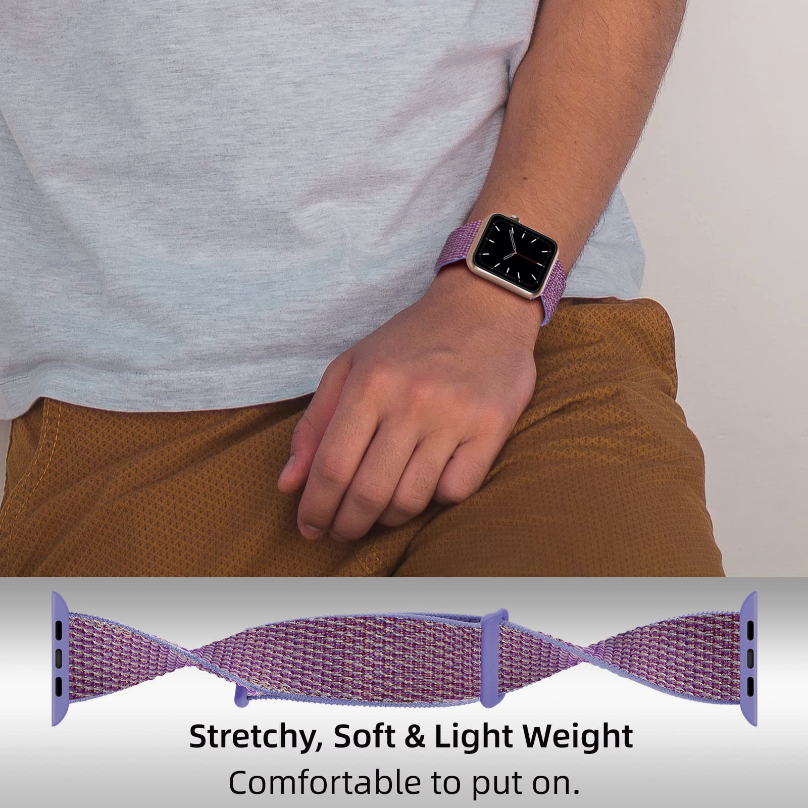 Opgrader dit ur med en komfortabel og sporty nylonrem til Apple Watch Series 8 41mm. Det bløde og fleksible materiale sidder behageligt på håndleddet, og takket være den smidige velcrolukning justerer du nemt pasformen for maksimal komfort.