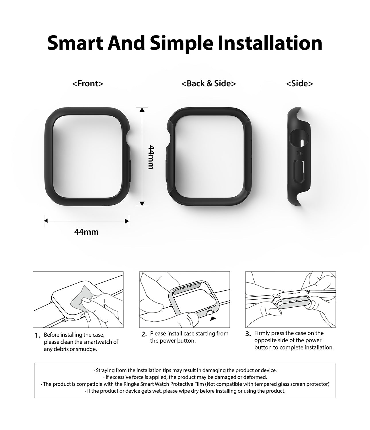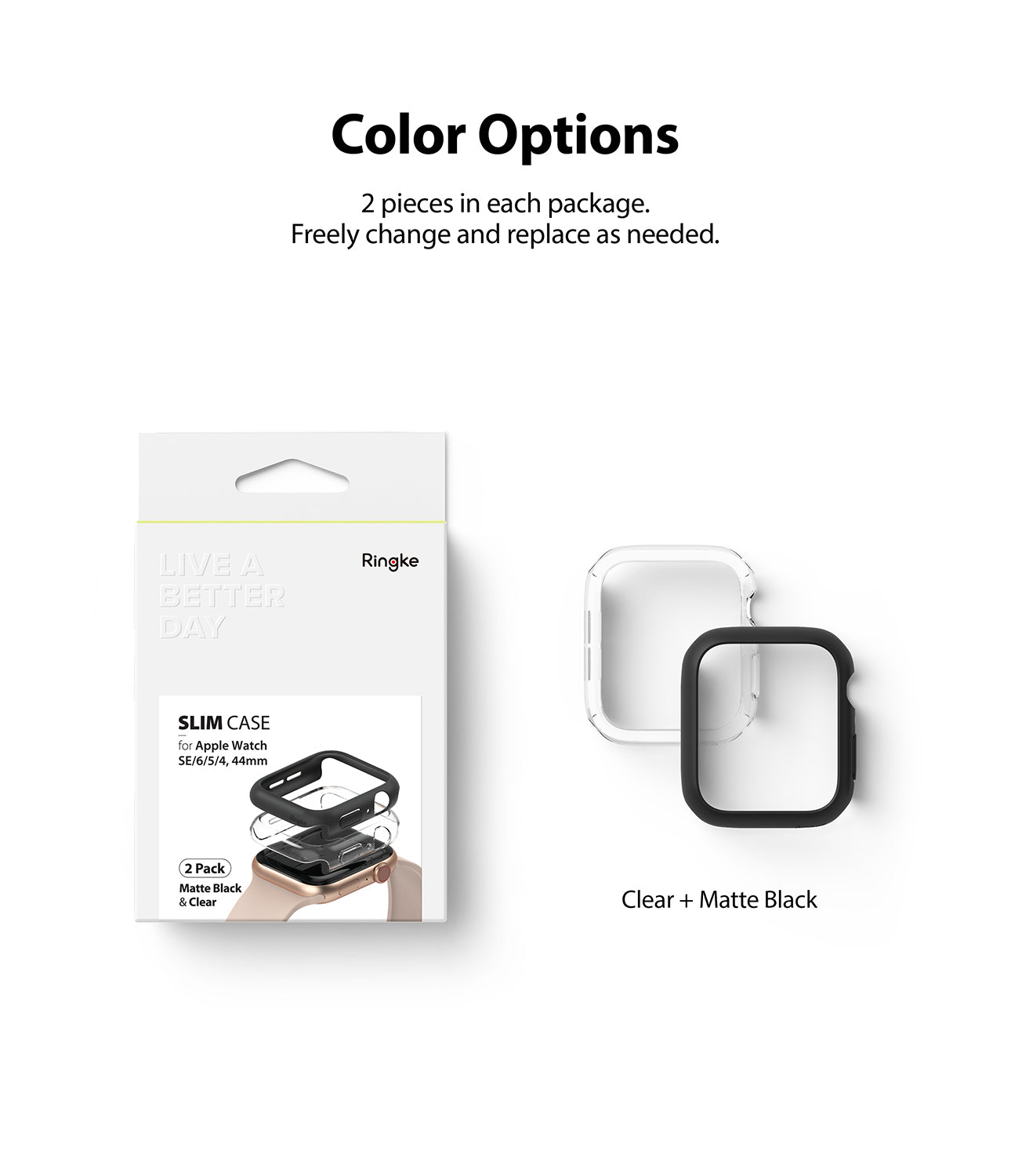 Ringke - Apple Watch SE 44mm Tyndt cover (2-pak), Matte Black & Clear