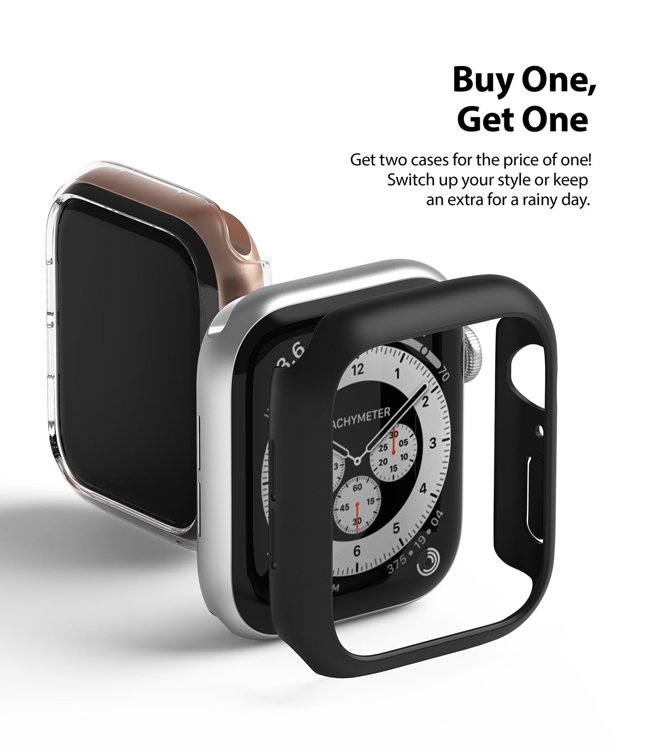 Apple Watch SE 44mm Tyndt cover (2-pak), Matte Black & Clear