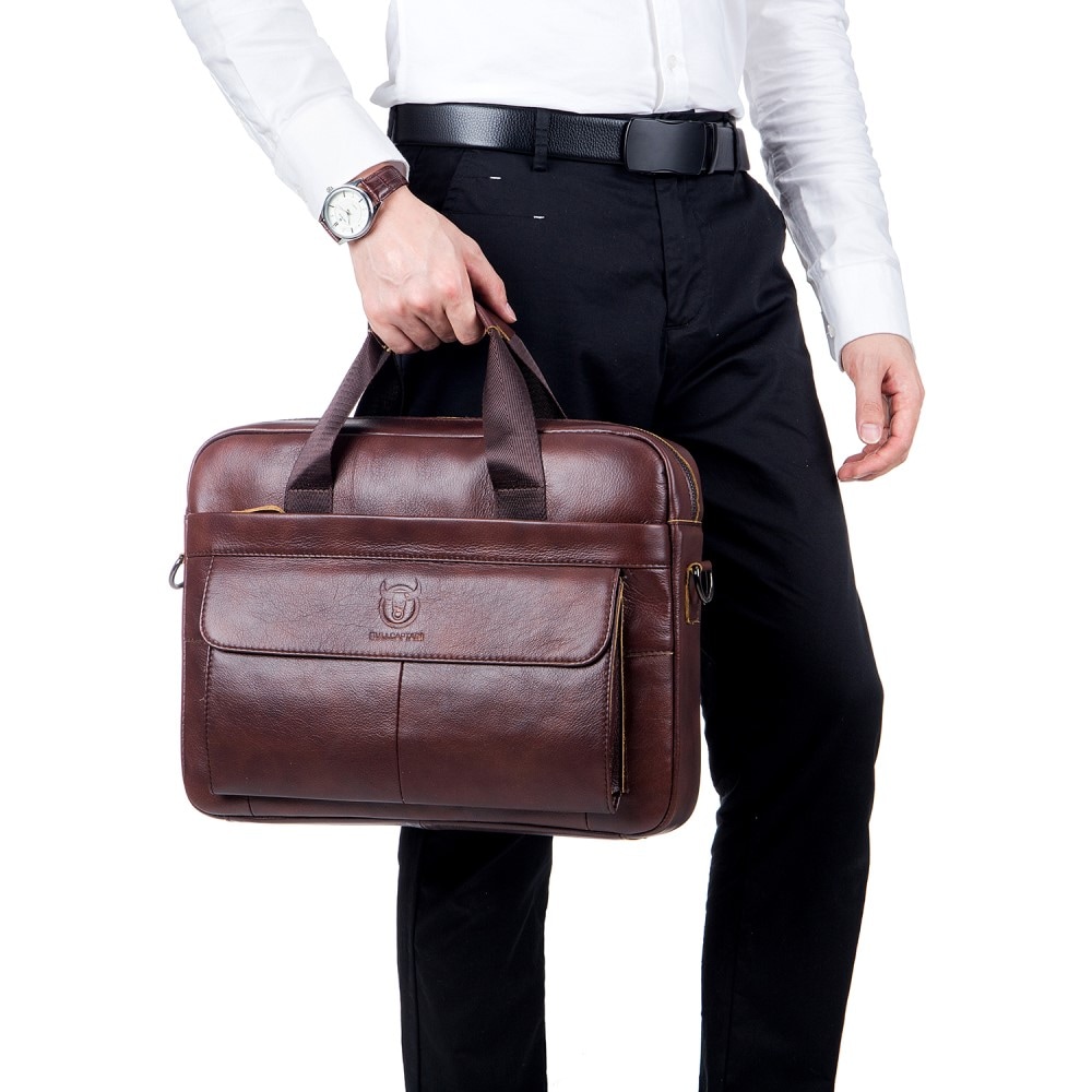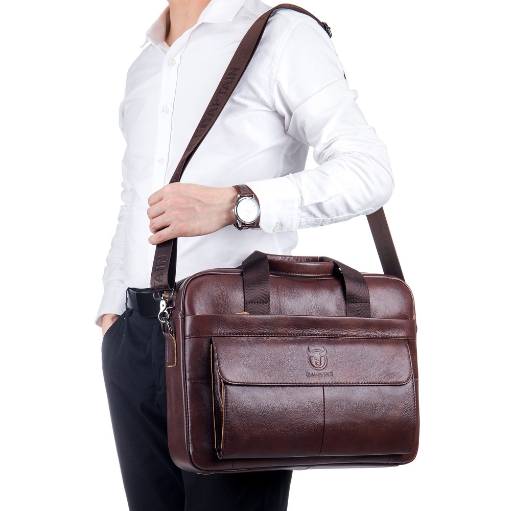 - Stilren og beskyttende laptop taske i læder
